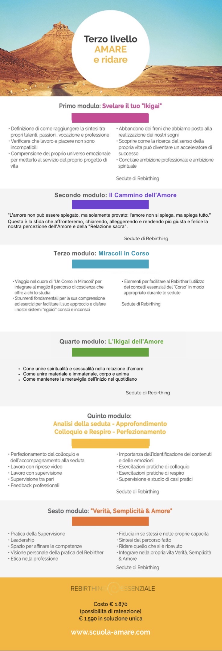 Il Secondo Livello, AMARE se stessi, conseguenza del lavoro di chiarificazione e riconciliazione con se stessi, trova lo spazio per approfondire elementi trattati nella prima parte e andare verso lo sviluppo delle capacità e competenze ad esercitare la professione di Rebirther. Questo livello, tra le altre cose, permetterà di capire più profondamente la varietà di forme e di utilizzo della respirazione. Alla fine di questo livello, al raggiungimento dei requisiti richiesti, si potrà cominciare ad esercitare la professione.